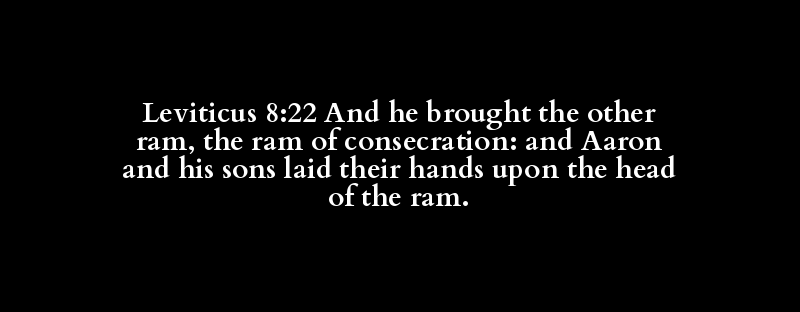 Leviticus 8:22 And he brought the other ram, the ram of consecration: and Aaron and his sons laid their hands upon the head of the ram.