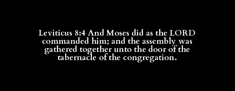 Leviticus 8:4 And Moses did as the LORD commanded him; and the assembly was gathered together unto the door of the tabernacle of the congregation.