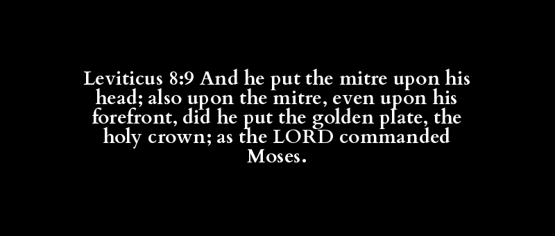 Leviticus 8:9 And he put the mitre upon his head; also upon the mitre, even upon his forefront, did he put the golden plate, the holy crown; as the LORD commanded Moses.