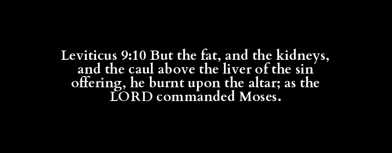 Leviticus 9:10 But the fat, and the kidneys, and the caul above the liver of the sin offering, he burnt upon the altar; as the LORD commanded Moses.