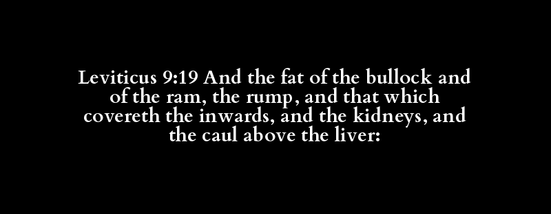 Leviticus 9:19 And the fat of the bullock and of the ram, the rump, and that which covereth the inwards, and the kidneys, and the caul above the liver: