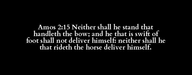 Amos 2:15 Neither shall he stand that handleth the bow; and he that is swift of foot shall not deliver himself: neither shall he that rideth the horse deliver himself.