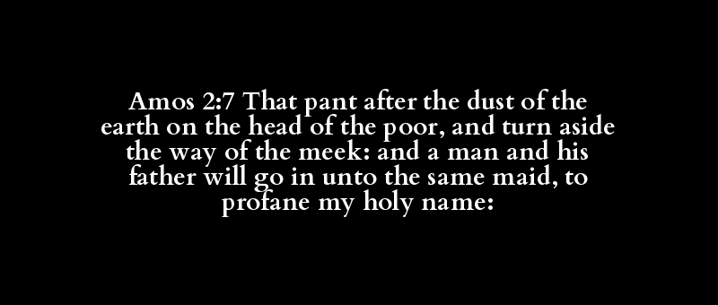 Amos 2:7 That pant after the dust of the earth on the head of the poor, and turn aside the way of the meek: and a man and his father will go in unto the same maid, to profane my holy name: