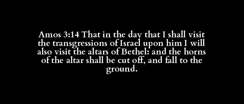 Amos 3:14 That in the day that I shall visit the transgressions of Israel upon him I will also visit the altars of Bethel: and the horns of the altar shall be cut off, and fall to the ground.