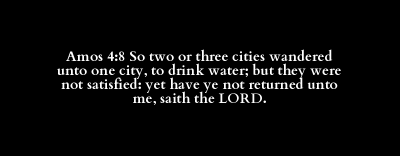 Amos 4:8 So two or three cities wandered unto one city, to drink water; but they were not satisfied: yet have ye not returned unto me, saith the LORD.
