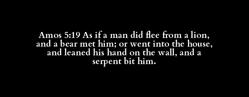 Amos 5:19 As if a man did flee from a lion, and a bear met him; or went into the house, and leaned his hand on the wall, and a serpent bit him.