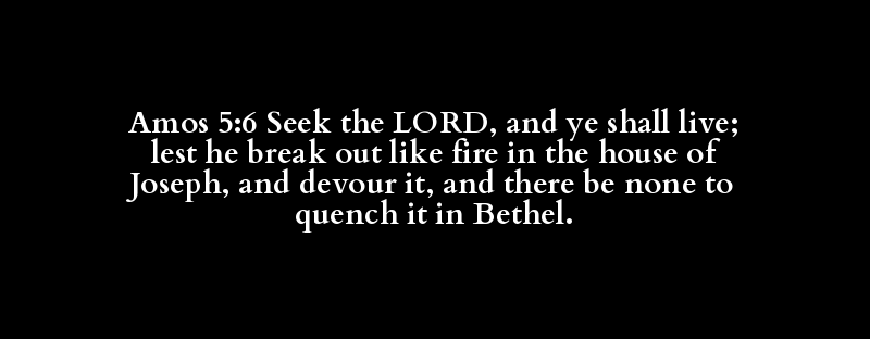 Amos 5:6 Seek the LORD, and ye shall live; lest he break out like fire in the house of Joseph, and devour it, and there be none to quench it in Bethel.