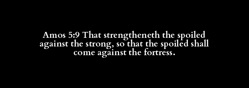 Amos 5:9 That strengtheneth the spoiled against the strong, so that the spoiled shall come against the fortress.