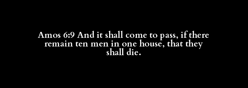 Amos 6:9 And it shall come to pass, if there remain ten men in one house, that they shall die.