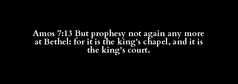 Amos 7:13 But prophesy not again any more at Bethel: for it is the king's chapel, and it is the king's court.