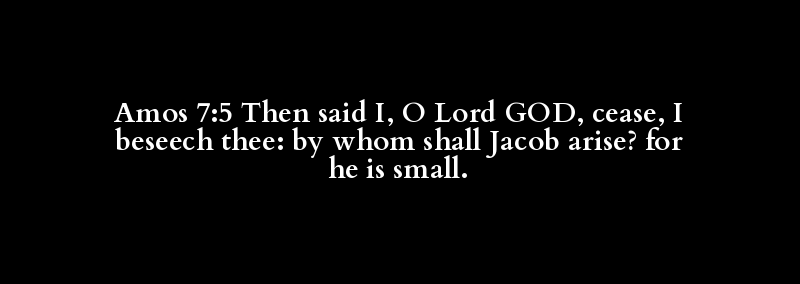 Amos 7:5 Then said I, O Lord GOD, cease, I beseech thee: by whom shall Jacob arise? for he is small.