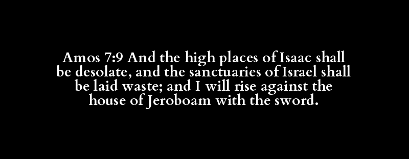 Amos 7:9 And the high places of Isaac shall be desolate, and the sanctuaries of Israel shall be laid waste; and I will rise against the house of Jeroboam with the sword.