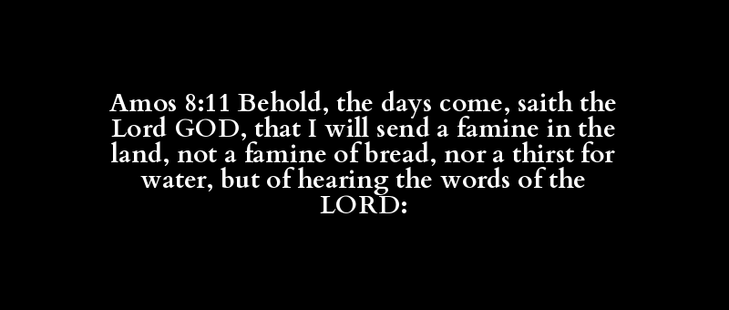 Amos 8:11 Behold, the days come, saith the Lord GOD, that I will send a famine in the land, not a famine of bread, nor a thirst for water, but of hearing the words of the LORD: