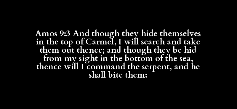 Amos 9:3 And though they hide themselves in the top of Carmel, I will search and take them out thence; and though they be hid from my sight in the bottom of the sea, thence will I command the serpent, and he shall bite them: