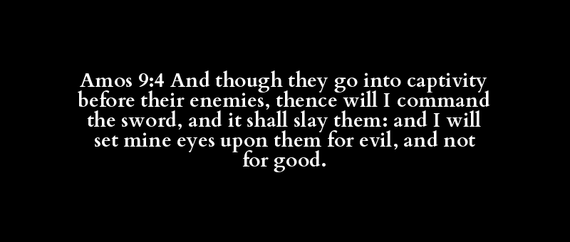 Amos 9:4 And though they go into captivity before their enemies, thence will I command the sword, and it shall slay them: and I will set mine eyes upon them for evil, and not for good.