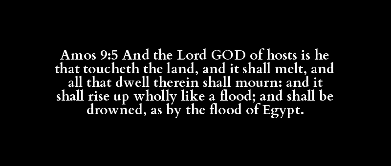 Amos 9:5 And the Lord GOD of hosts is he that toucheth the land, and it shall melt, and all that dwell therein shall mourn: and it shall rise up wholly like a flood; and shall be drowned, as by the flood of Egypt.