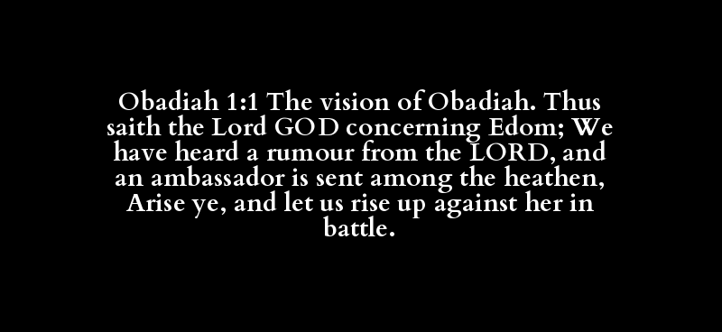 Obadiah 1:1 The vision of Obadiah. Thus saith the Lord GOD concerning Edom; We have heard a rumour from the LORD, and an ambassador is sent among the heathen, Arise ye, and let us rise up against her in battle.