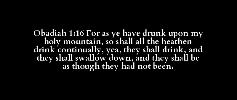 Obadiah 1:16 For as ye have drunk upon my holy mountain, so shall all the heathen drink continually, yea, they shall drink, and they shall swallow down, and they shall be as though they had not been.