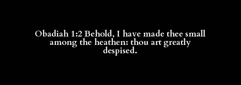 Obadiah 1:2 Behold, I have made thee small among the heathen: thou art greatly despised.