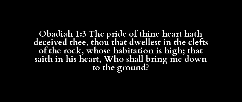 Obadiah 1:3 The pride of thine heart hath deceived thee, thou that dwellest in the clefts of the rock, whose habitation is high; that saith in his heart, Who shall bring me down to the ground?