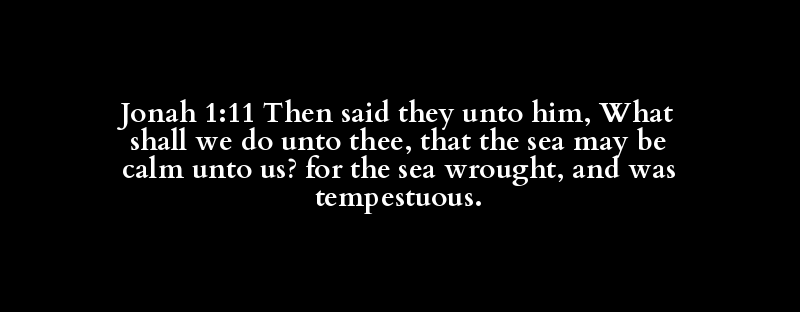 Jonah 1:11 Then said they unto him, What shall we do unto thee, that the sea may be calm unto us? for the sea wrought, and was tempestuous.
