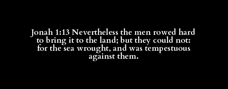 Jonah 1:13 Nevertheless the men rowed hard to bring it to the land; but they could not: for the sea wrought, and was tempestuous against them.