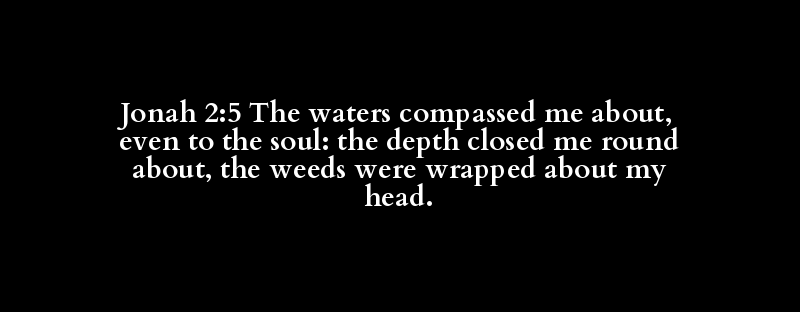 Jonah 2:5 The waters compassed me about, even to the soul: the depth closed me round about, the weeds were wrapped about my head.