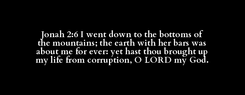 Jonah 2:6 I went down to the bottoms of the mountains; the earth with her bars was about me for ever: yet hast thou brought up my life from corruption, O LORD my God.