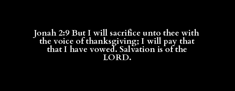 Jonah 2:9 But I will sacrifice unto thee with the voice of thanksgiving; I will pay that that I have vowed. Salvation is of the LORD.