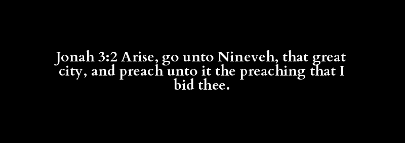 Jonah 3:2 Arise, go unto Nineveh, that great city, and preach unto it the preaching that I bid thee.