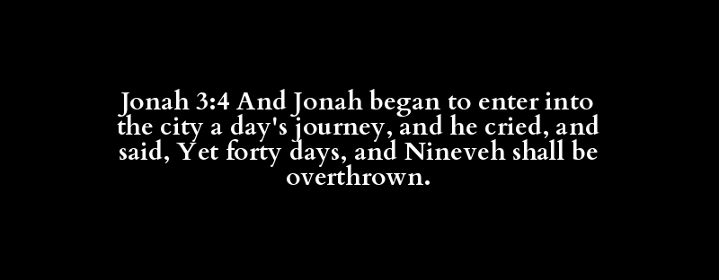Jonah 3:4 And Jonah began to enter into the city a day's journey, and he cried, and said, Yet forty days, and Nineveh shall be overthrown.
