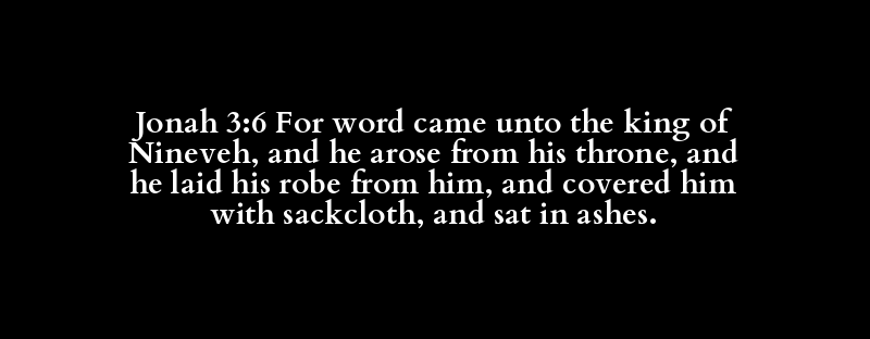 Jonah 3:6 For word came unto the king of Nineveh, and he arose from his throne, and he laid his robe from him, and covered him with sackcloth, and sat in ashes.