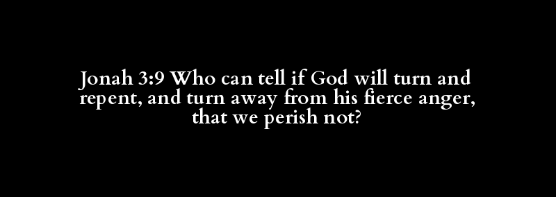 Jonah 3:9 Who can tell if God will turn and repent, and turn away from his fierce anger, that we perish not?