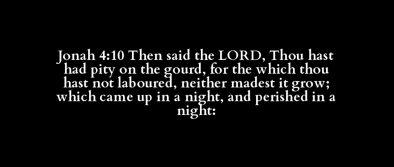 Jonah 4:10 Then said the LORD, Thou hast had pity on the gourd, for the which thou hast not laboured, neither madest it grow; which came up in a night, and perished in a night: