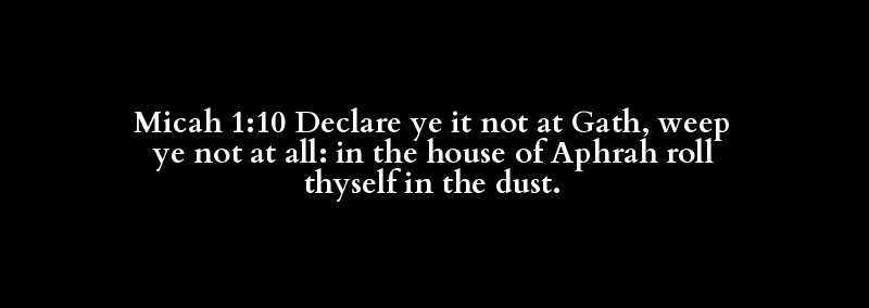 Micah 1:10 Declare ye it not at Gath, weep ye not at all: in the house of Aphrah roll thyself in the dust.