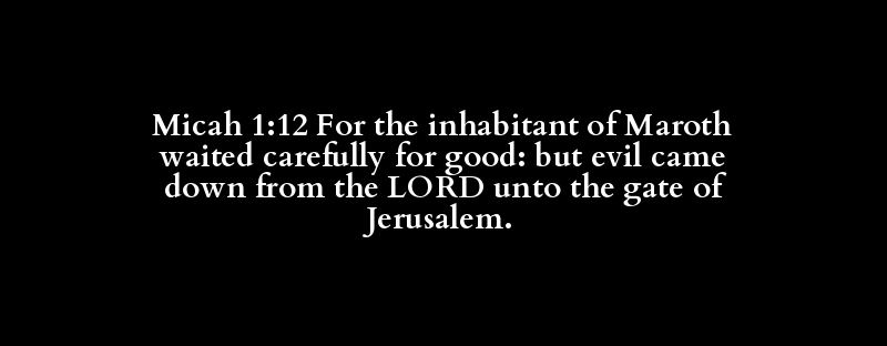 Micah 1:12 For the inhabitant of Maroth waited carefully for good: but evil came down from the LORD unto the gate of Jerusalem.