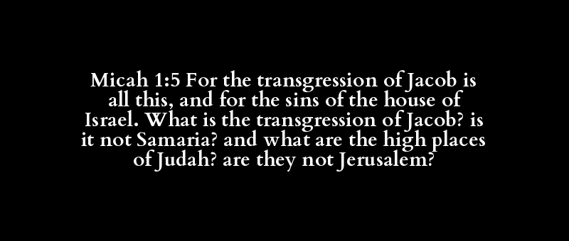 Micah 1:5 For the transgression of Jacob is all this, and for the sins of the house of Israel. What is the transgression of Jacob? is it not Samaria? and what are the high places of Judah? are they not Jerusalem?