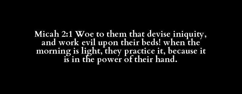 Micah 2:1 Woe to them that devise iniquity, and work evil upon their beds! when the morning is light, they practice it, because it is in the power of their hand.