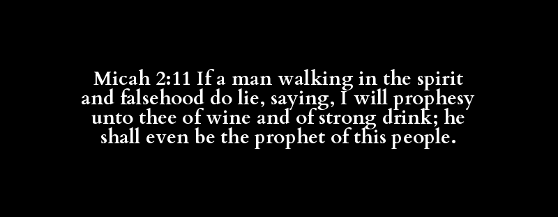 Micah 2:11 If a man walking in the spirit and falsehood do lie, saying, I will prophesy unto thee of wine and of strong drink; he shall even be the prophet of this people.