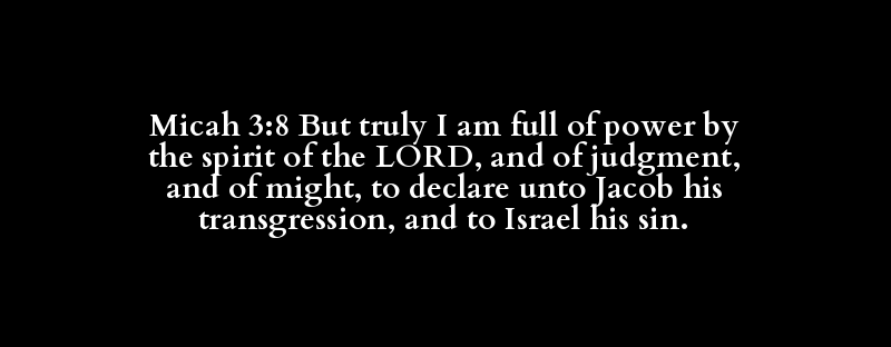 Micah 3:8 But truly I am full of power by the spirit of the LORD, and of judgment, and of might, to declare unto Jacob his transgression, and to Israel his sin.