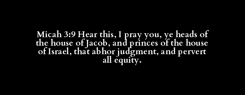 Micah 3:9 Hear this, I pray you, ye heads of the house of Jacob, and princes of the house of Israel, that abhor judgment, and pervert all equity.