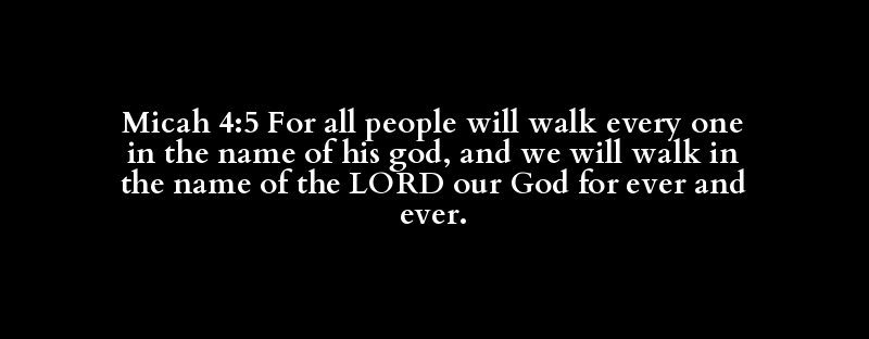 Micah 4:5 For all people will walk every one in the name of his god, and we will walk in the name of the LORD our God for ever and ever.