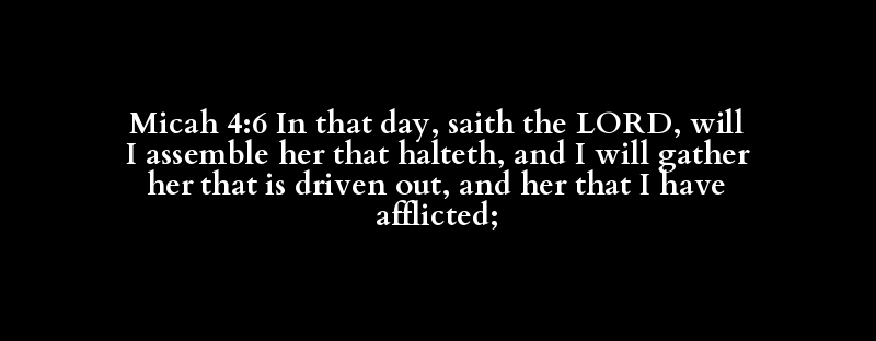 Micah 4:6 In that day, saith the LORD, will I assemble her that halteth, and I will gather her that is driven out, and her that I have afflicted;