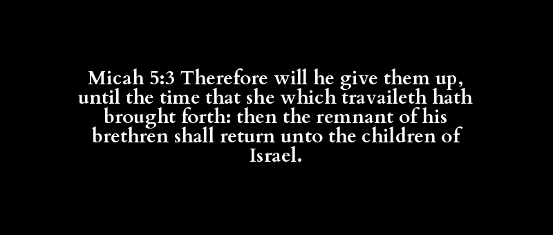 Micah 5:3 Therefore will he give them up, until the time that she which travaileth hath brought forth: then the remnant of his brethren shall return unto the children of Israel.