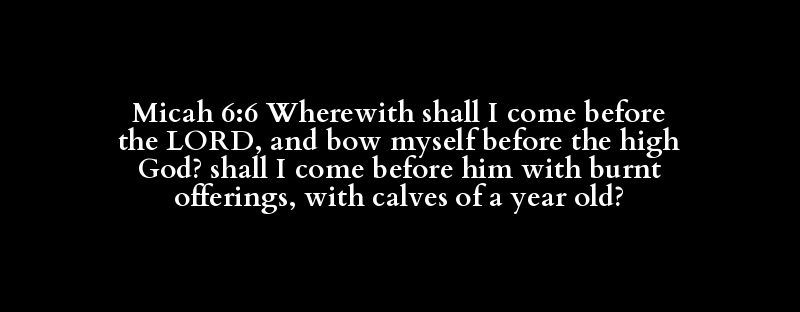Micah 6:6 Wherewith shall I come before the LORD, and bow myself before the high God? shall I come before him with burnt offerings, with calves of a year old?