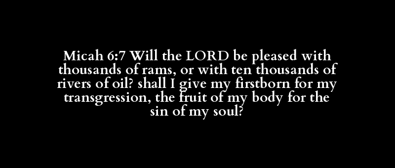 Micah 6:7 Will the LORD be pleased with thousands of rams, or with ten thousands of rivers of oil? shall I give my firstborn for my transgression, the fruit of my body for the sin of my soul?