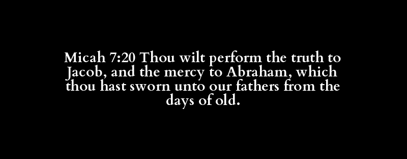 Micah 7:20 Thou wilt perform the truth to Jacob, and the mercy to Abraham, which thou hast sworn unto our fathers from the days of old.