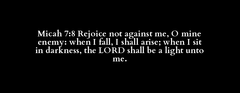 Micah 7:8 Rejoice not against me, O mine enemy: when I fall, I shall arise; when I sit in darkness, the LORD shall be a light unto me.