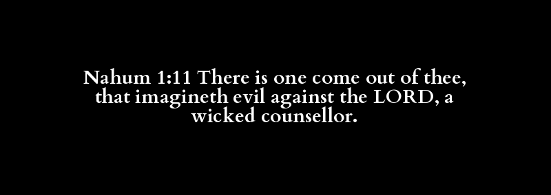 Nahum 1:11 There is one come out of thee, that imagineth evil against the LORD, a wicked counsellor.