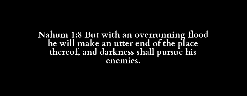 Nahum 1:8 But with an overrunning flood he will make an utter end of the place thereof, and darkness shall pursue his enemies.